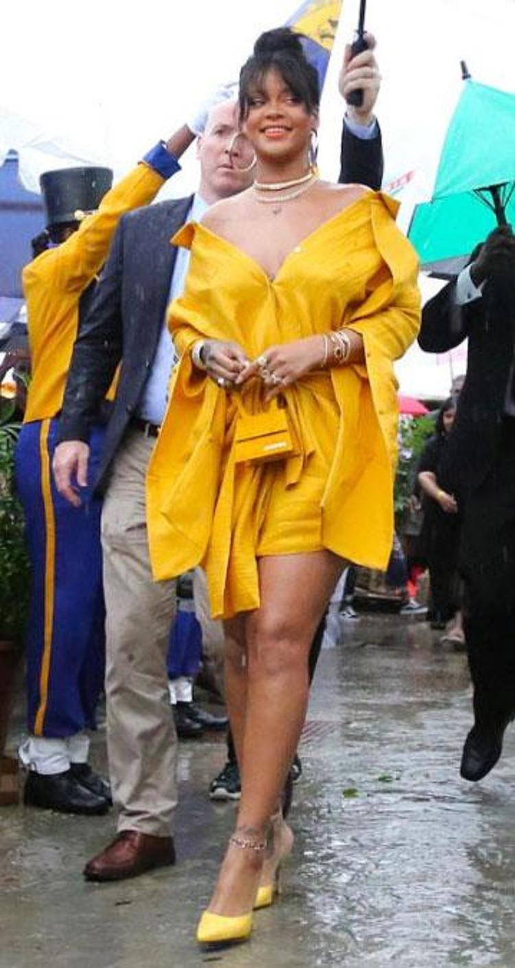 During An Event For Rihanna S Clara Lionel Foundation The Star Chose Soft Blue Hues Rocking A Matthew Adams Dolan Rihanna Outfits Rihanna Looks Rihanna Style